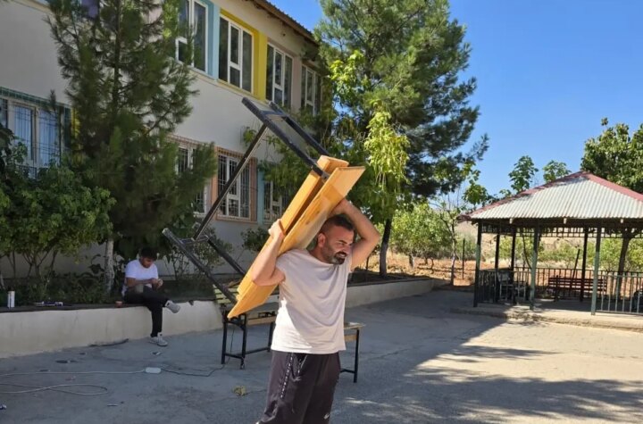 Siirt'in Eruh ilçesindeki Mehmet Akif Ersoy İlkokulu'nda okul müdürü, öğretmenler ve veliler, yeni eğitim-öğretim...